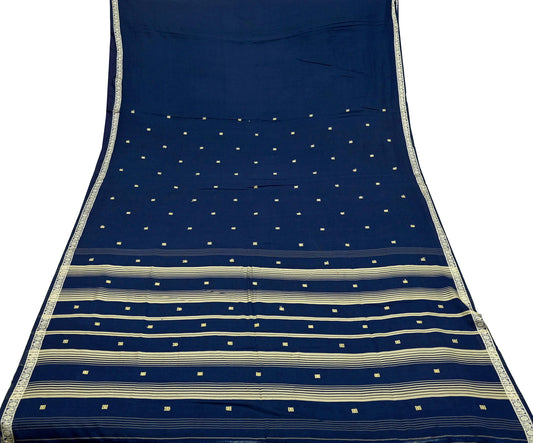 Indian Vintage Sari Blue Pure Cotton Hand Woven Sarees Craft Fabric 5Yd Sewing Soft Crafting Dress making Upcycle Quilting