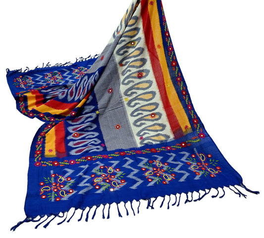 Indian Vintage Dupatta Blue & White Long Stole Hand woven Sambalpuri Ikat Kantha Hijab Pure Cotton Scarves Veil