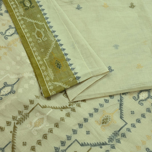 Indian Vintage Sari Olive Green Pure Cotton Bengali Handloom Tant Sarees Craft Fabric 5Yd Sewing Soft Crafting Dress making Upcycle Quilting