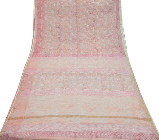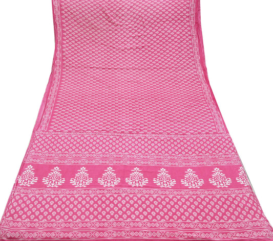 Indian Vintage Sari Pink Printed Pure Cotton Sarees 5Yd Craft Fabric Sewing Sarong Wrap Boho Upcycle quilting Dress making Crafting
