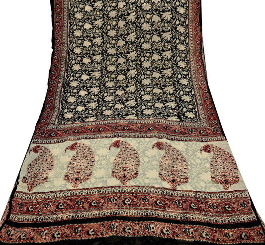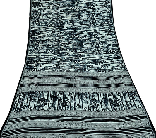Indian Vintage Black & Gray Saree 100% Pure Silk Printed Sari 5yd Sewing Craft Fabric Dress Making Soft Crafting Quilting Upcycle
