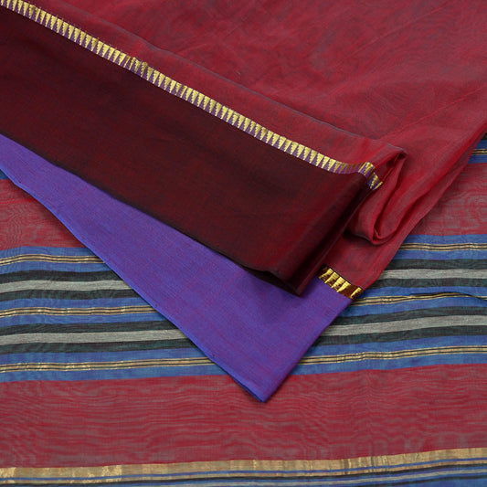 Indian Vintage Sari Maroon Chanderi Cotton Hand Woven Sarees 6Yd Craft Fabric Soft Sewing Sarong Dress Making Quilting Crafting Zari Border