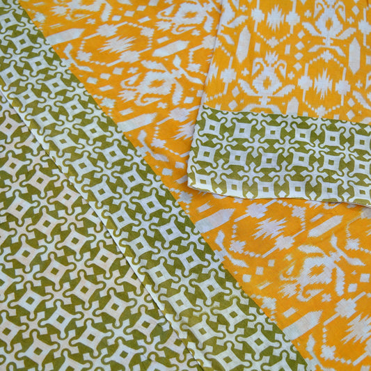 Indian Vintage Sari Green & Orange Printed Pure Cotton Sarees Craft Fabric Soft 5Yd Sewing Sarong Wrap Boho Floral Upcycle Dress making