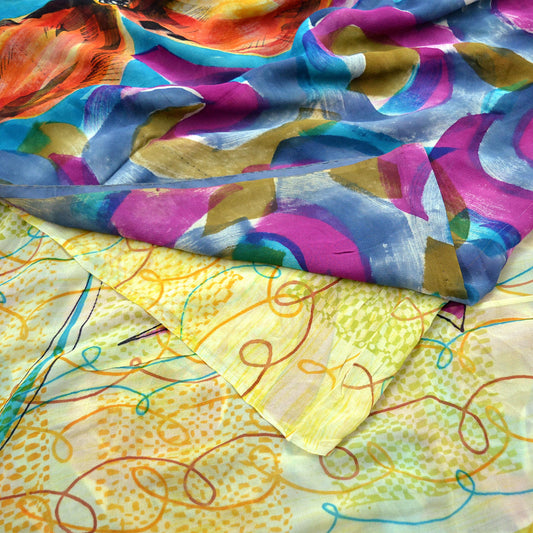 Indian Vintage Multi Saree 100% Pure Georgette Silk Printed Sari Sewing 5yd Craft Soft Dress Designing for Crafting Geometric Dress making