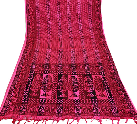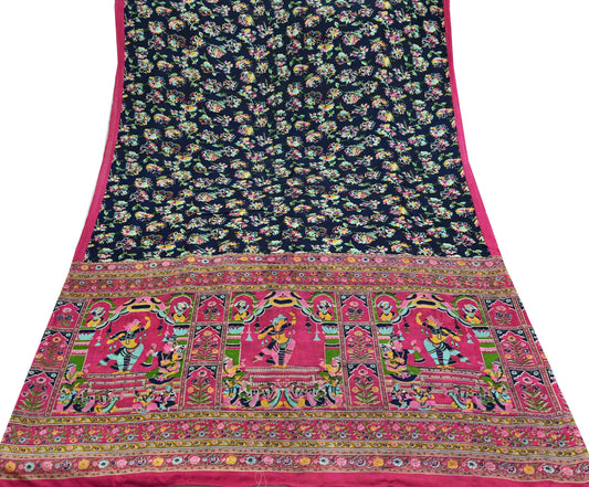 Indian Vintage Black & Pink Saree 100% Pure Silk Printed Sari 5yd Sewing Craft Fabric DressMaking Soft Fringes Crafting Quilting Upcycle