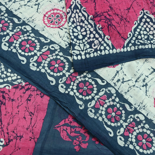 Indian Vintage Sari Gray & Pink Batik Printed Saree 100% Pure Cotton 5Yd Craft Fabric Soft Sewing Sarong Wrap Boho Quilting Dress Making