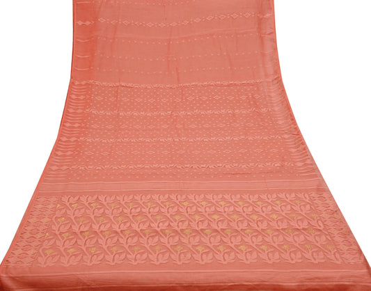 Indian Vintage Sarees Peach Pure Cotton Hand Woven Jamdani Sari 5yd Ethnic Floral Craft Fabric Dress making Upcycle Crafting Quilting