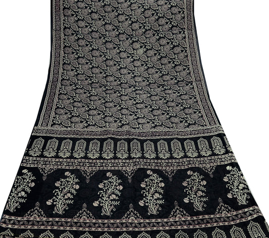 Indian Vintage Sari Black Printed 100% Pure Cotton Saree Craft Fabric 5Yard Sewing Sarong Wrap Boho Floral Dress Making Crafting Quilting