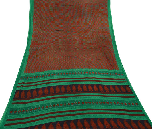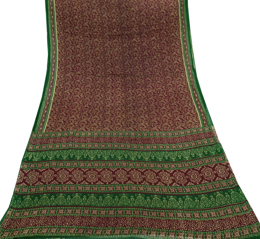Indian Vintage Green & Maroon Saree Printed Pure Cotton Sari Craft Fabric Soft 5Yd Sewing Sarong Wrap Boho Floral Dress making Crafting