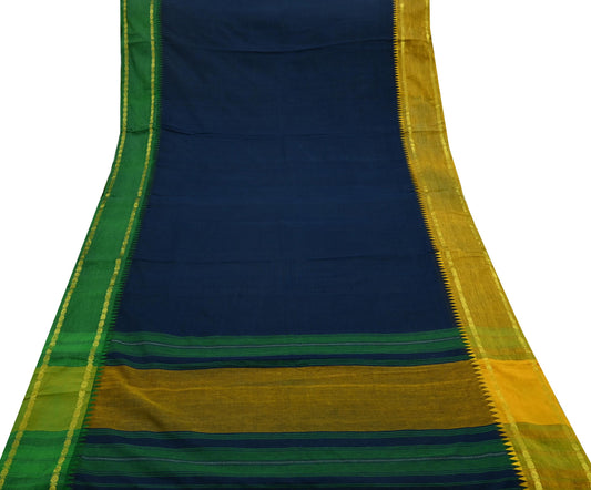 Indian Vintage Sari Blue Pure Cotton Hand Woven Saree Zari 5Yd Craft Fabric Floral Dress making Crafting Quilting Sarong