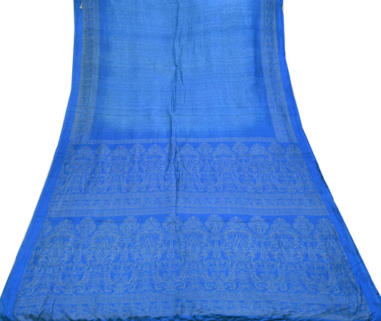 Indian Vintage Sari Blue Printed Sari Pure Silk Saree Craft Fabric Sewing 6yd Floral Soft Floral Wrap Sarong Dress making Crafting Quilting