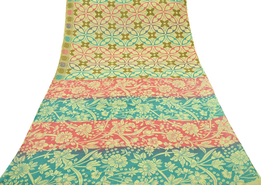 Indian Women Vintage Blue & Green Saree Pure Georgette Silk Batik Printed Sari Sewing 5yard Soft Craft Floral Design Wrap Boho