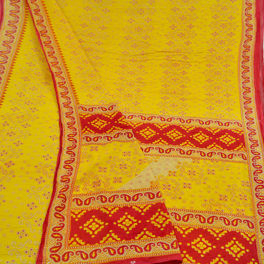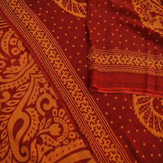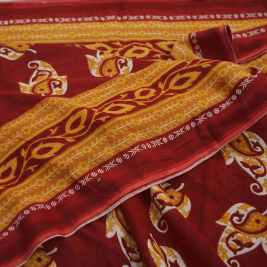 Indian Vintage Sari Red & Yellow Printed 100% Pure Cotton Saree Craft Soft Fabric 5Yard Sewing Sarong Wrap Boho
