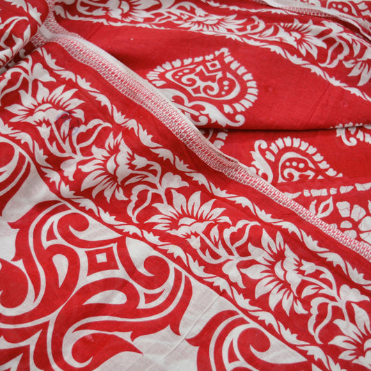 Indian Vintage Sari Red & White Printed 100% Pure Cotton Saree Craft Fabric 5Yard Sewing Sarong Wrap Boho Floral