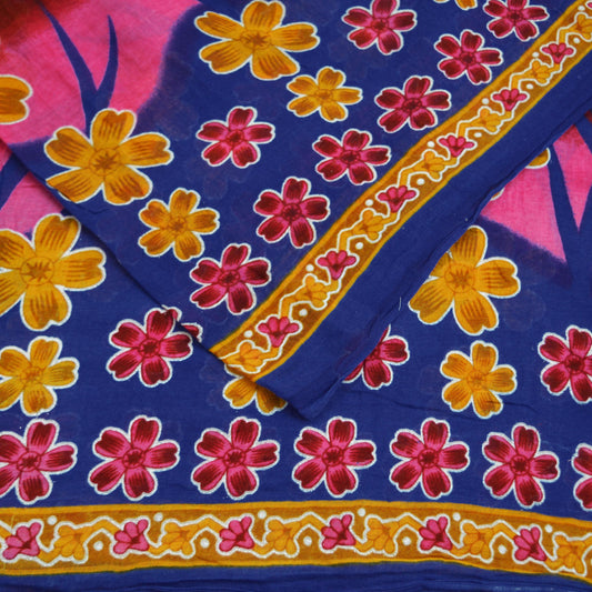 Indian Vintage Sari Blue Printed Sari Pure Silk Saree Craft Fabric Sewing 5yd Floral Soft Floral Wrap Sarong Dress making Crafting Quilting
