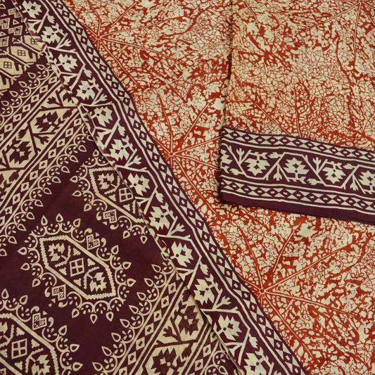 Indian Vintage Sari Orange & Beige Printed Sarees 100% Pure Cotton Craft Fabric Soft 5Yd Sewing Sarong Wrap Floral Dress Making Crafting