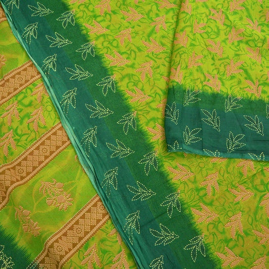 Indian Vintage Green Saree Printed Pure Cotton Sari Craft Fabric Soft 5Yd Sewing Sarong Wrap Boho Floral Dress making Crafting Quilting