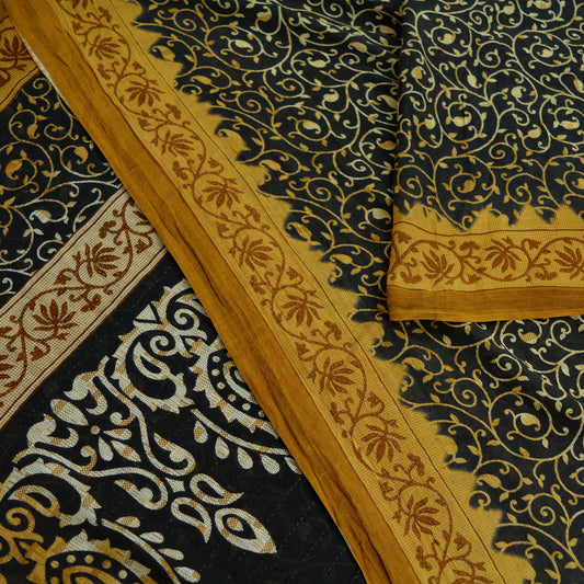 Indian Vintage Sari Brown Printed Sarees 100% Pure Cotton Craft Fabric 5Yd Sewing Soft Sarong Wrap Boho Dress Making Crafting Upcycle