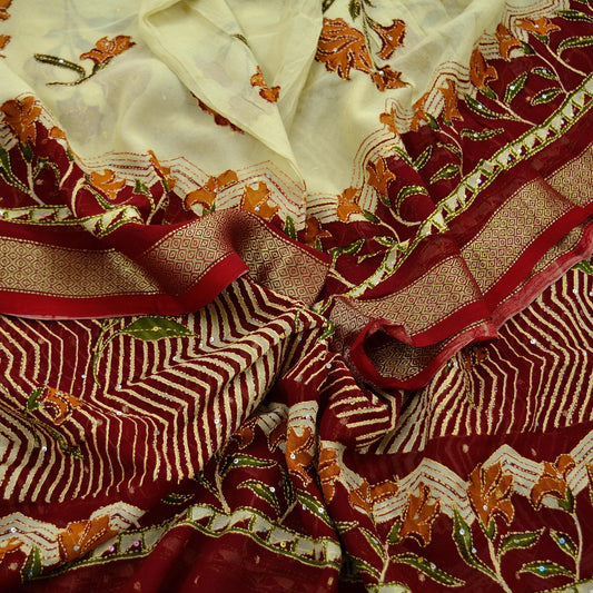 Indian Pre-owned Heavy Wedding Hand Embroidered Lehenga/ Dupatta Set By Designer Abu Jani Bridal Wear Net/ Pure Chanderi Cotton