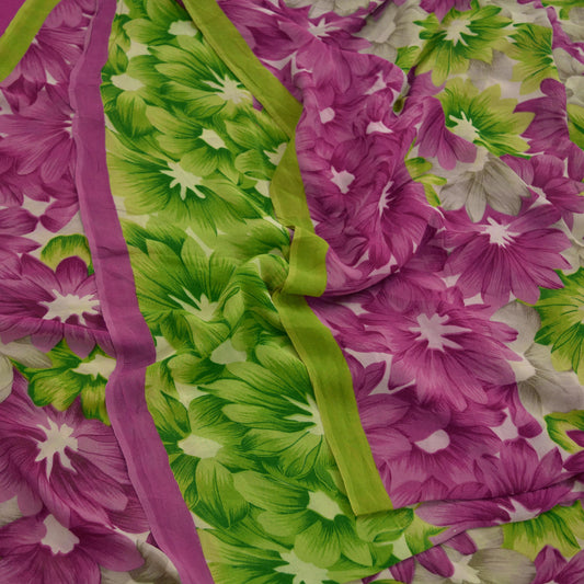 Indian Vintage Saree Purple & Green 100% Pure Georgette Silk Printed Sari Sewing 5yd Craft Fabric Soft Floral Dress Designing for Crafting