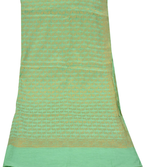 Indian Vintage Green Dupatta Long Stole Woven Cotton Scarves Veil Golden Zari Soft Floral Design
