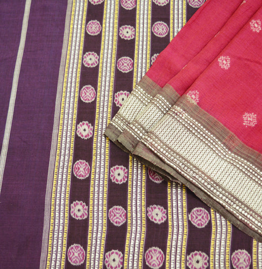 Indian Vintage Red & Purple Hand woven Sambalpuri Ikat sari Saree Pure Cotton Indian Sari Fabric 5Yard Ethnic Chackra Border