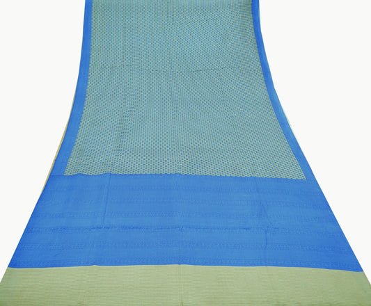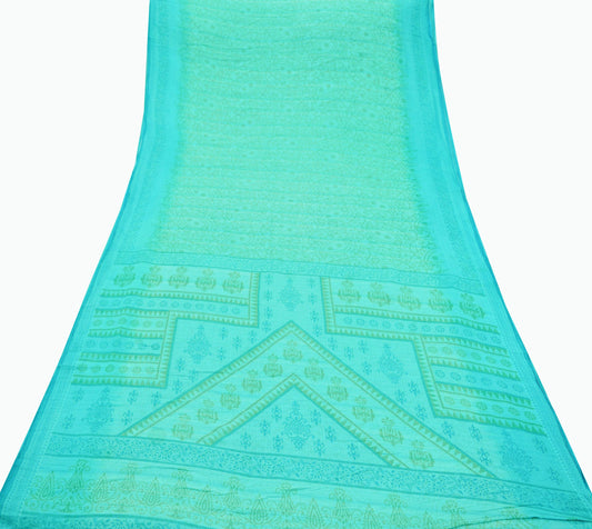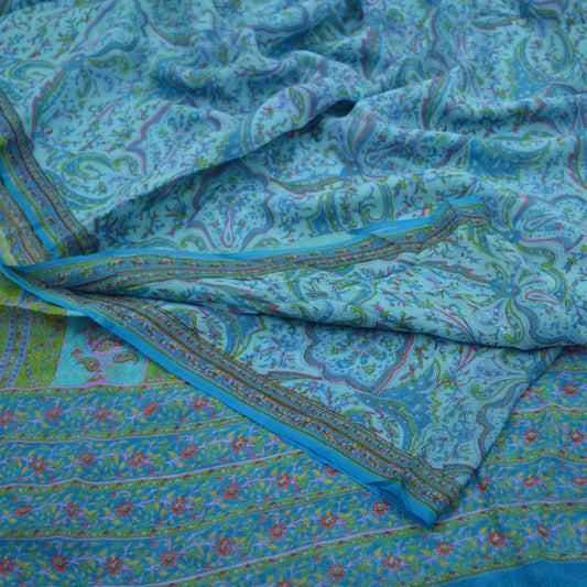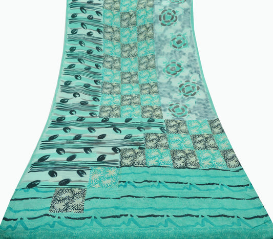 Vintage Blue & Green Saree Artificial Silk Printed Sari Sewing 5yd Craft Fabric Soft Floral Crafting Dress Making Crafting Quilting Upcycle