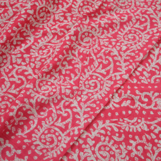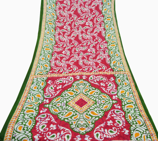 Indian Vintage Sari Red & Green Batik Printed Saree 100% Pure Cotton 5Yd Craft Fabric Soft Sewing Sarong Wrap Boho Quilting Dress Making