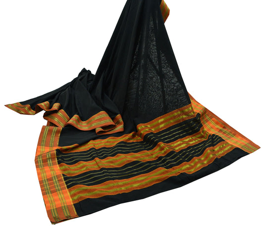 Indian Vintage Sari Black Pure Cotton Hand Woven Sarees 6yd Craft Fabric Ethnic Soft Sewing Zari Dress making Quitting Crafting Upcycle