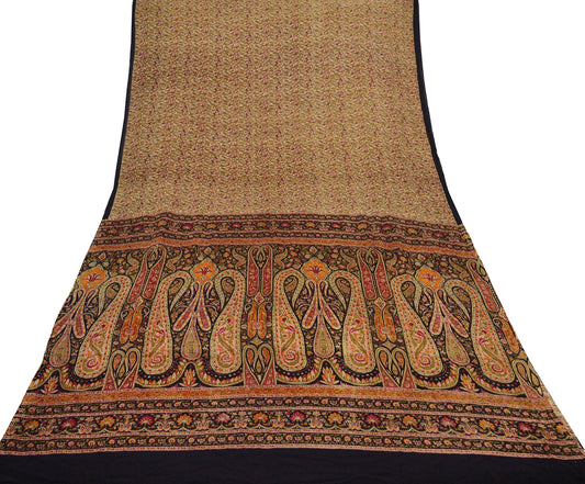 Indian Vintage Beige & Gray Saree Pure Crepe Silk Printed Sari 5yd Sewing Soft Craft Fabric Wrap Dress Making Crafting Quilting Upcycle Used