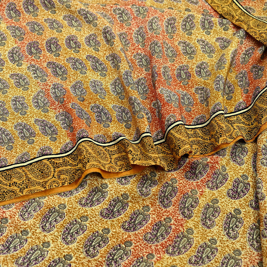 Indian Vintage Saree Orange Moss Crepe Printed Sari 5yd Sewing Floral Soft Craft Fabric Dressmaking Quilting Crafting Upcycle