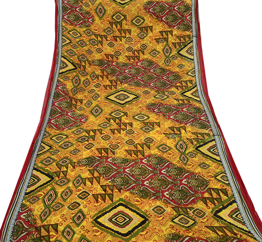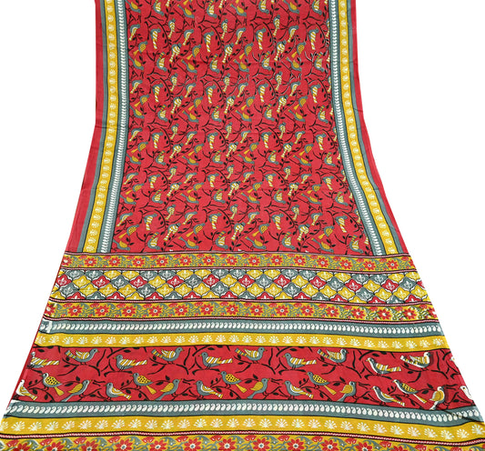 Indian Vintage Red & Mustard Saree Printed 100% Pure Cotton Sari Craft Fabric 5Yd Soft Sewing Sarong Wrap Dress Making Quilting Crafting