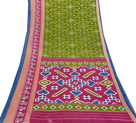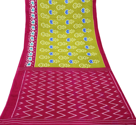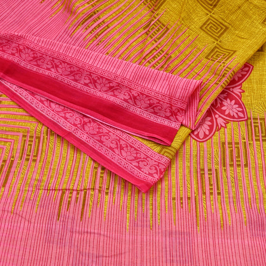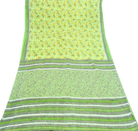 Indian Vintage Sari Yellow & Green Printed 100% Pure Cotton Saree Craft Fabric 5Yd Soft Sewing Sarong Wrap Boho