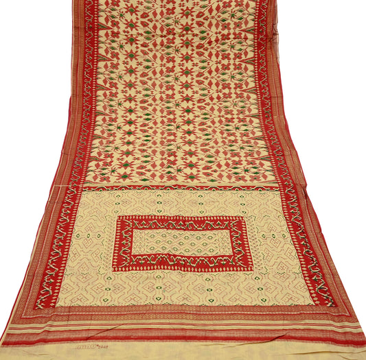Indian Vintage Red & Beige Saree Printed 100% Pure Cotton Sari Craft Fabric 5Yd Soft Sewing Sarong Wrap Dress Making Quilting Crafting