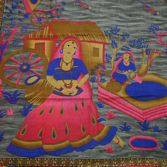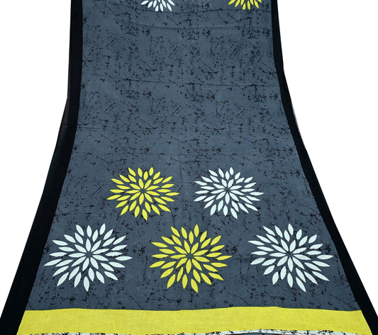 Indian Vintage Gray Saree Printed Pure Cotton Sari Craft Fabric 5Yd Sewing Soft Sarong Wrap Boho Floral Quilting Crafting