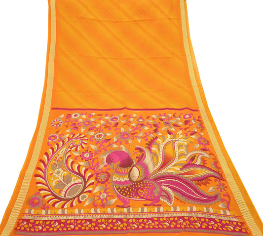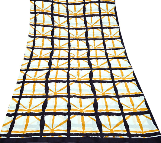 Indian Vintage Sari Yellow & Saffron Printed 100% Pure Cotton Sarees Craft Fabric 5Yd Sewing Sarong Wrap Floral Boho Quilting Crafting