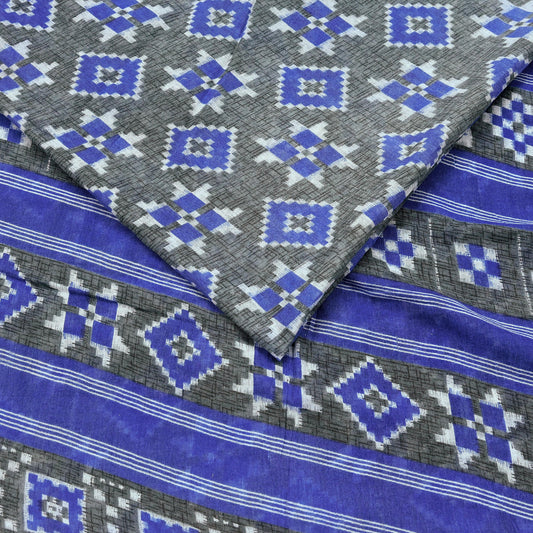 Indian Vintage Sari Blue & Gray Printed 100% Pure Cotton Saree Craft Fabric 5Yd Soft Sewing Sarong Wrap Boho Stripes Dress making Quilting