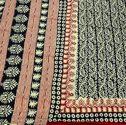 Indian Vintage Black & Ivory Sarees Pure Cotton Block Printed Sari 5yd Sewing Craft Fabric DressMaking Soft Crafting Quilting Upcycle
