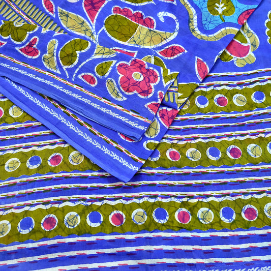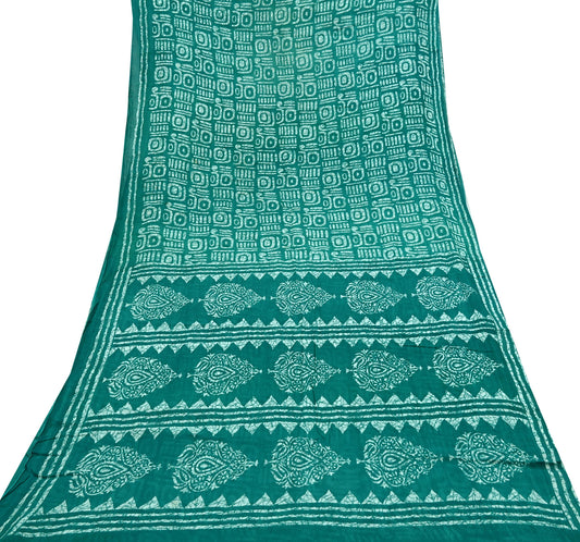 Indian Vintage Sari Green Batik Printed Saree 100% Pure Cotton 5Yd Craft Fabric Soft Sewing Sarong Wrap Boho Quilting Dress Making