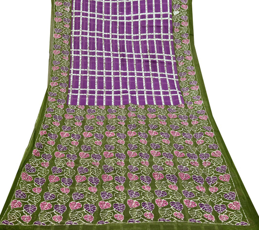 Indian Vintage Sari Purple & Green Batik Printed Saree 100% Pure Cotton 5Yd Craft Fabric Soft Sewing Sarong Wrap Boho Quilting Dress Making