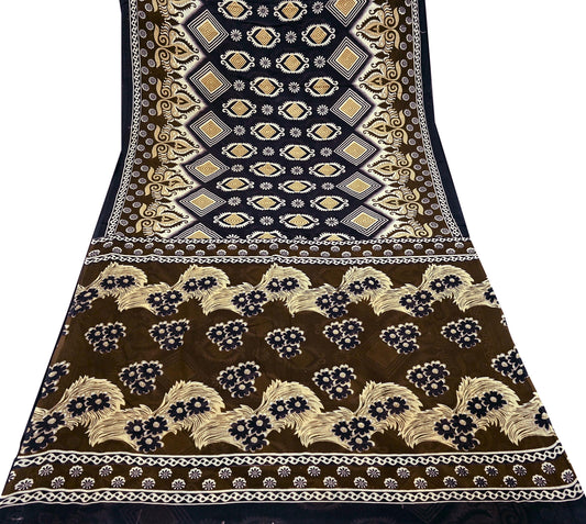 Indian Vintage Brown & Black Saree Printed Pure Cotton Sari Craft Fabric 5Yd Sewing Sarong Wrap Boho Floral Quilting Crafting Dress Making