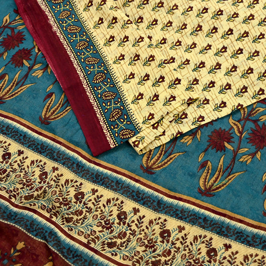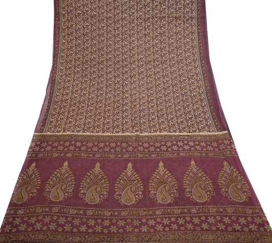 Vintage Maroon Beige Printed Pure Cotton Saree 5 Yard Floral Paisley Fabric Indian Ethnic Textile for Sewing, Dressmaking & Crafts