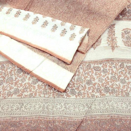 Indian Vintage Ivory Sarees Pure Cotton Block Printed Sari 5yd Sewing Craft Fabric DressMaking Soft Crafting Quilting Upcycle