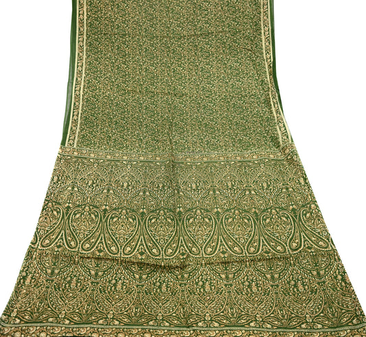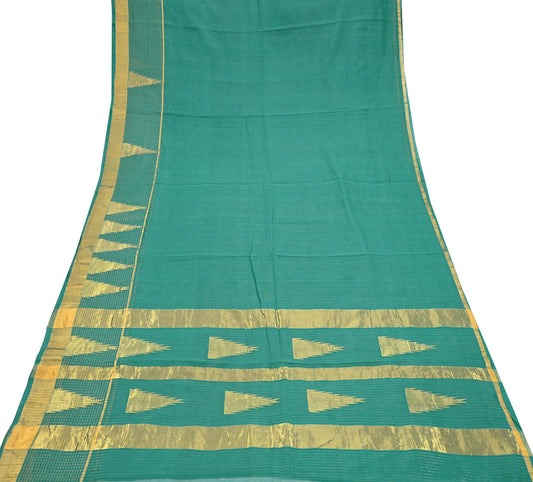 Indian Vintage Sari Green Pure Cotton Hand Woven Saree Craft Fabric 5yd Sewing Ethnic Soft Dress making Quilting Dress Designing Zari