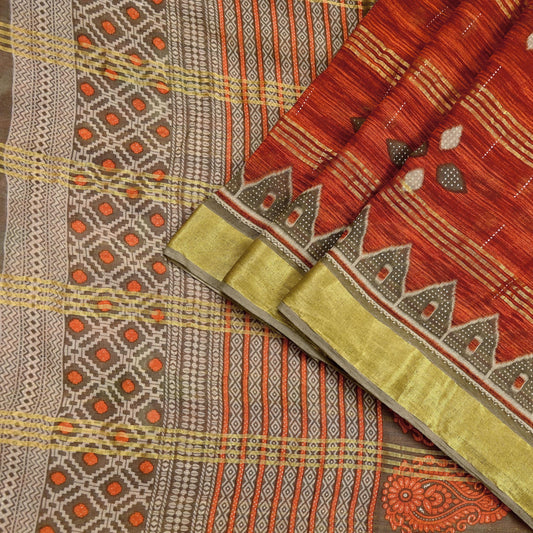 Indian Vintage Sari Orange Chanderi Cotton Hand Woven Sarees 6Yd Craft Fabric Soft Sewing Sarong Dress Making Quilting Crafting Zari Border