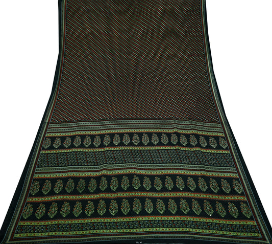 Indian Vintage Sari Black Printed 100% Pure Cotton Saree Craft Fabric 5Yd Sewing Sarong Wrap Boho Floral Dress making