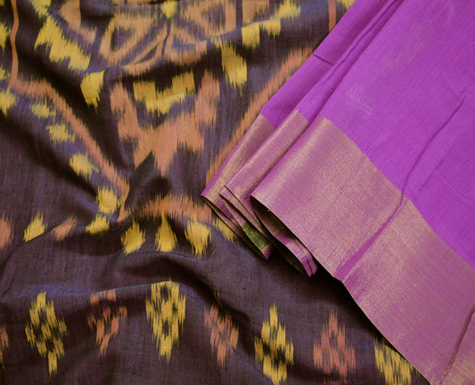 Indian Vintage Purple Hand woven Sambalpuri Ikat sari Saree Blend Cotton Indian Sari Fabric 5Yard Craft Ethnic Zari Border
