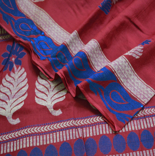 Indian Vintage Sari Red Hand Painted Sari Pure Cotton Saree Fabric 5Yard Floral Soft