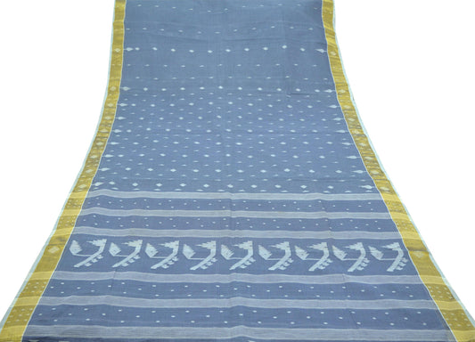 Indian Vintage Sarees Gray Pure Cotton Hand Woven Jamdani Sari 5yd Ethnic Floral Craft Fabric Dress making Upcycle Crafting Quilting