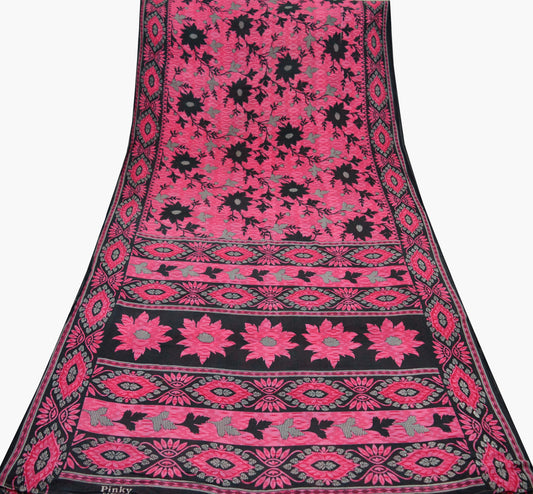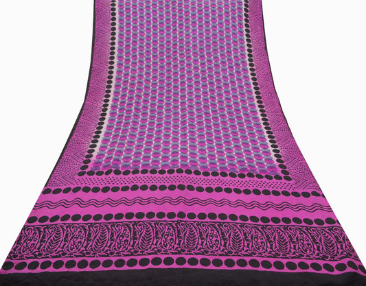 Indian Vintage Sari Pink & Black Printed 100% Pure Cotton Saree Craft Soft Fabric 5Yd Sewing Sarong Wrap Boho Polka Dot